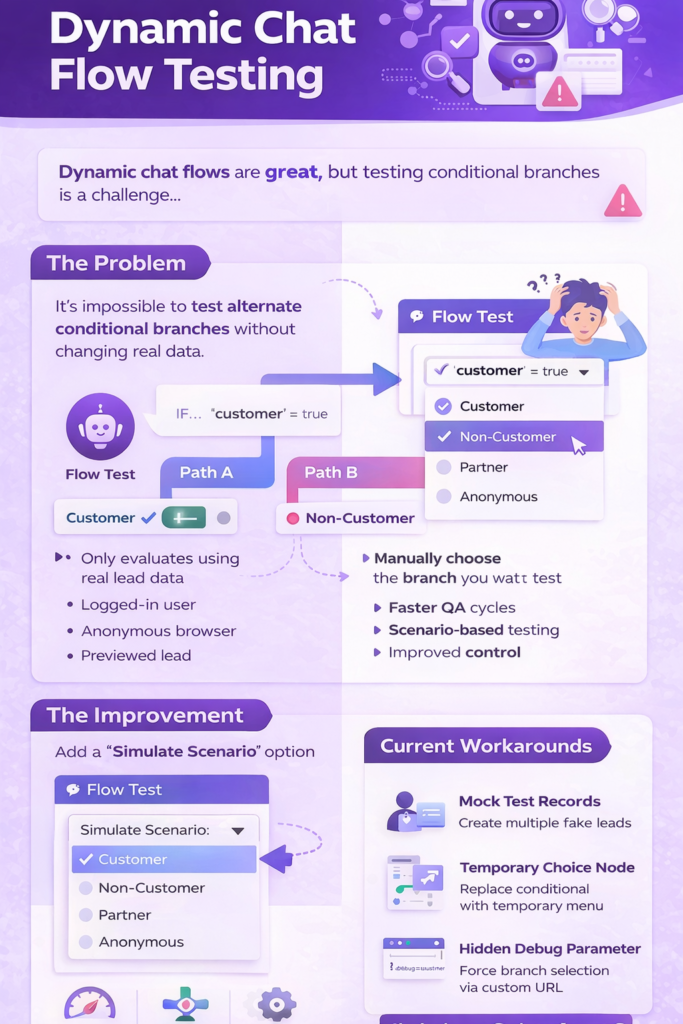 Right now, Dynamic Chat assumes that testing should simulate real-world conditions only. But in practice, marketing teams need to simulate multiple possible user states — quickly.